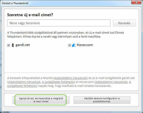 A felugró ablakban válaszd az "Ugorja át ezt, és használja a meglévő e-mail címet" gombot.