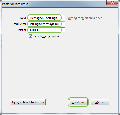 Add meg neved (ezt fogják látni a címzettek), message.hu-s e-mail címed és jelszavad, majd kattints a Folytatás gombra.