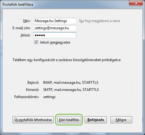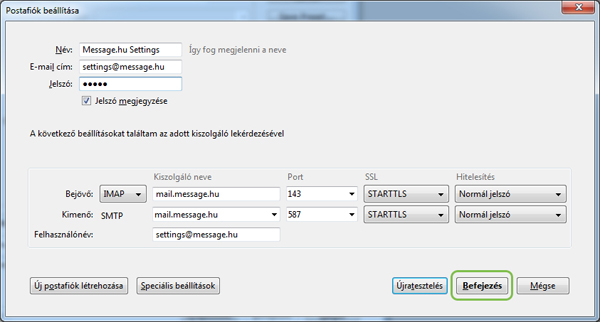 Utolsó lépésben kattints a Befejezés gombra és már használhatod is message.hu-s levelező fiókod.